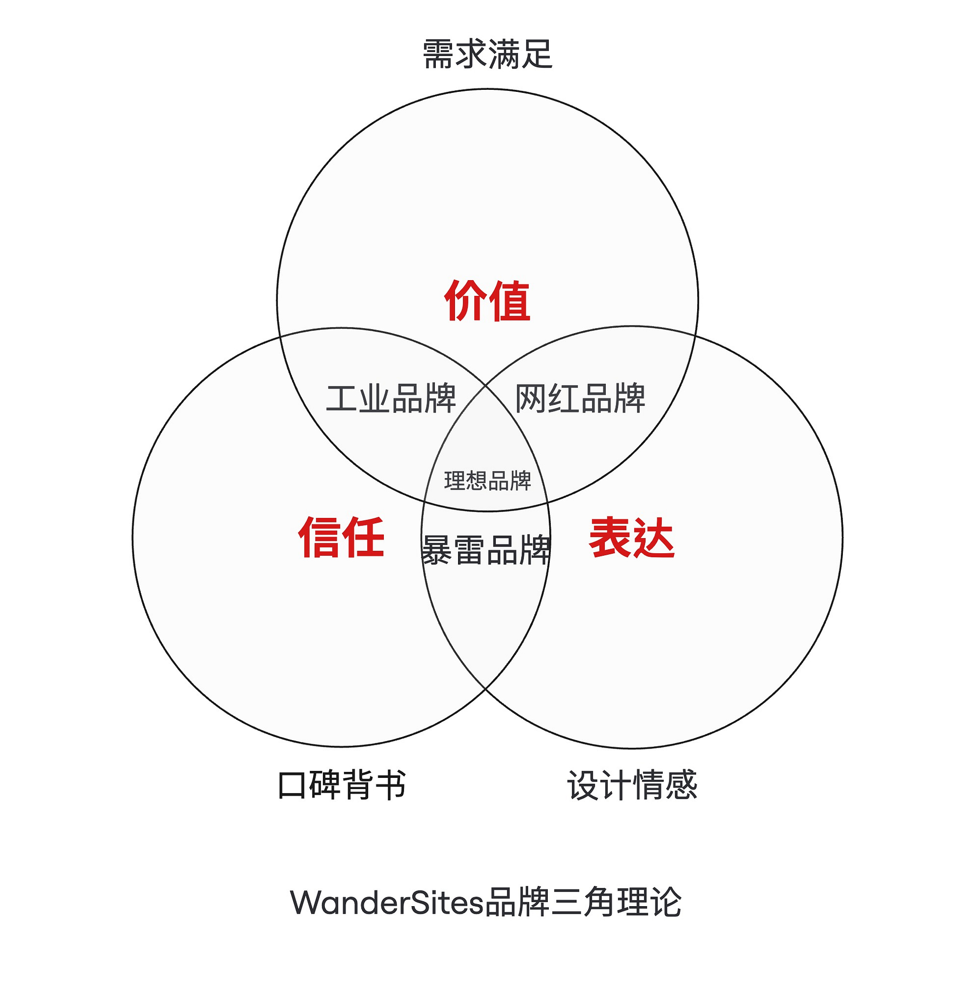 幸亏,研究爱情的人足够多,时间足够久,甚至还发展出一套爱情三角理论。我慢慢觉得,品牌也有属于自己的三角理论。我就称之为WanderSites品牌三角吧。